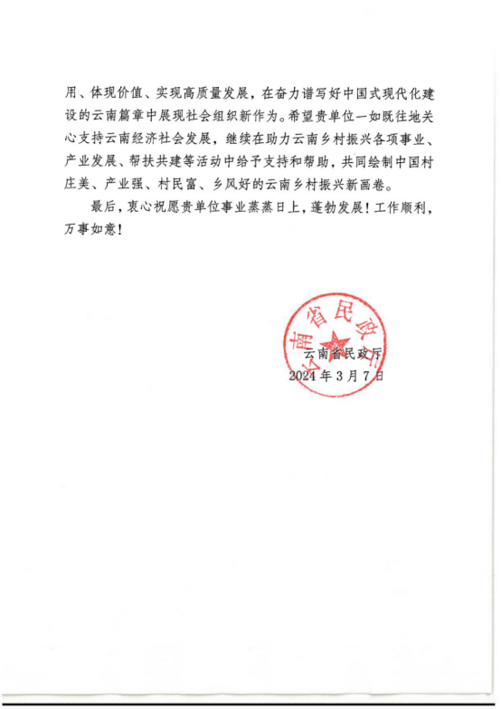 2024云南民政厅感谢信