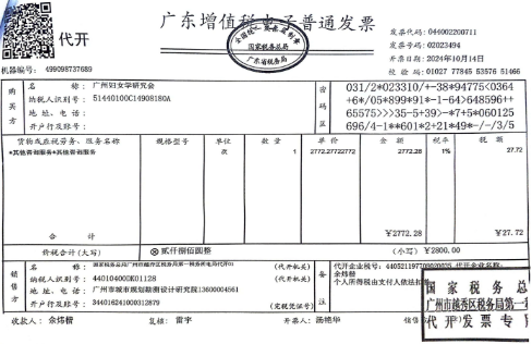 备注:该凭证只取礼仪劳务费,每人400元,共2人,合计800元。3300元为1.7.2媒体劳务费(3300+800=4100),1748.52元为1.2.10工作餐交通费金额,625元为1.10打印费(1748.52+625=2373.52)。