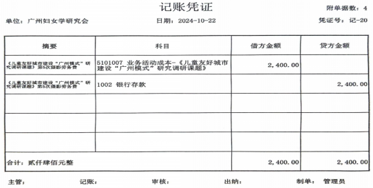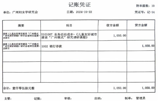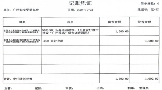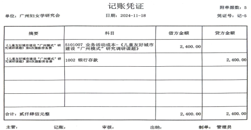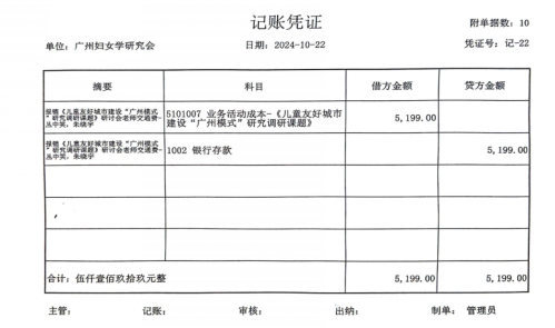 四、 实现目标的项目活动:包括组织专题研讨会3次(1、6月21日,广州妇女学研究会11人赴越秀区白云街,围绕儿童友好社区建设的广州实践与创新探索进行调研座谈;2、7月26日至27日,广州妇女学研究会承办的儿童友好城市建设“广州模式”调研活动在广州进行。其中,7月26日,与会专家11人在广州市新儿童活动中心举办调研座谈会;3、10月9日,由广州妇女学研究会主办的《童心筑城——儿童友好城市建设“广州模式”》座谈会在广州举行,来自北京、上海、杭州等兄弟城市的专家学者,与广州本市的研究者以及在一线实践场景从事儿童友好城市建设的参与者共聚一堂,为广州儿童友好城市建设贡献智慧力量,共同推进广州儿童友好城市的高质量创建工作。);举办了全市5区(越秀区、天河区、白云区、增城区、黄埔区)跨越2个月的走访调研活动以及广州市外相关城市(深圳市、珠海市、韶关市)的走访活动;省级出版社书号、审校、设计、制作、印刷(1000册);图片及视频(内容包括走访调研研讨会发布会等,用于书稿出版、媒体发布、课题资料等环节);课题组23人,撰写课题报告(2-3万字,不含图片)、内参(2篇,报市级或以上党委政府相关职能部门,如省妇联等)、出版书籍1本(字数15万字左右)、针对云街儿童友好创建工作的提质增效的建议报告1篇;组织3次新闻发布内容分别8家媒体;课题组相关人员负责资料收集、网络访谈、整理录音、会务志愿等;新书发布会。