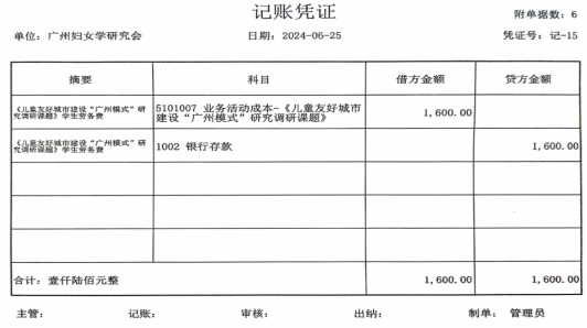 1.6、75000元,课题组23人,撰写课题报告(2-3万字,不含图片)、内参(2篇,报市级或以上党委政府相关职能部门,如省妇联等)、出版书籍1本(字数15万字左右)、针对白云街儿童友好创建工作的提质增效的建议报告1篇。