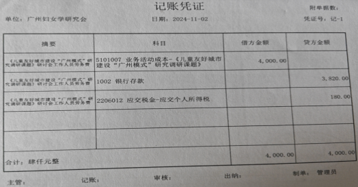 1.8.4工作人员劳务费4000元(银行回单300、1520、600、800、600、税180;)