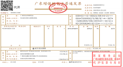 无发票,政策变动,税率变为1%,该费用已经含在开出发票内。 |