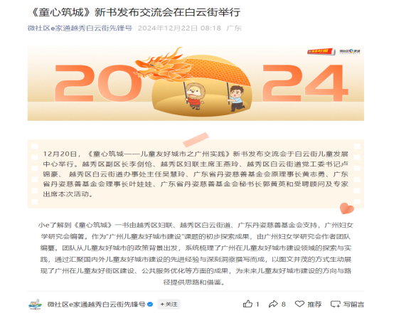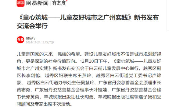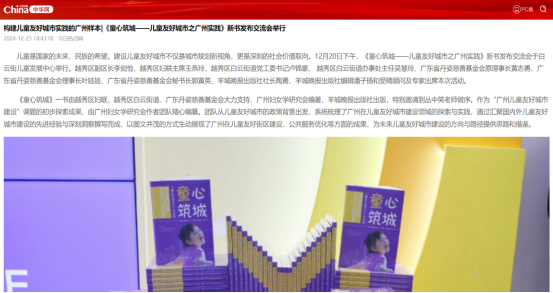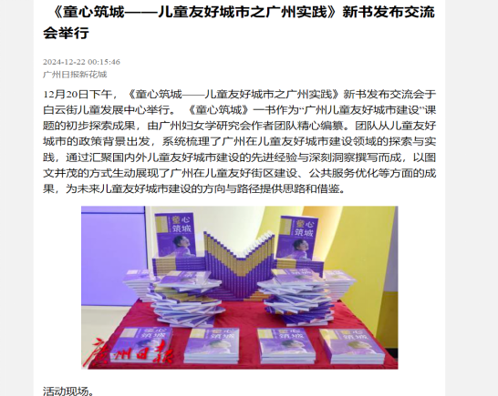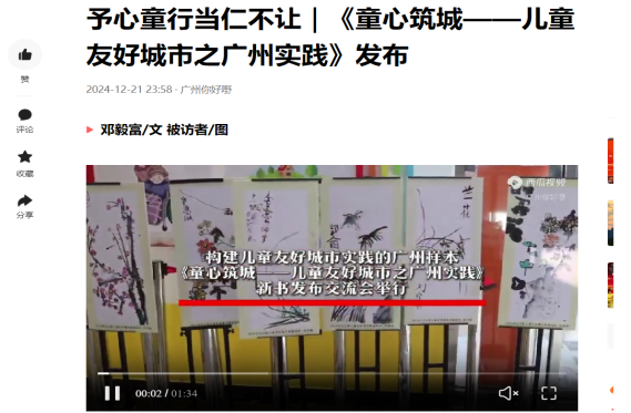 2024年12月20日白云街儿童发展中心童心筑城——儿童友好城市之广州实践新书发布会会后报道